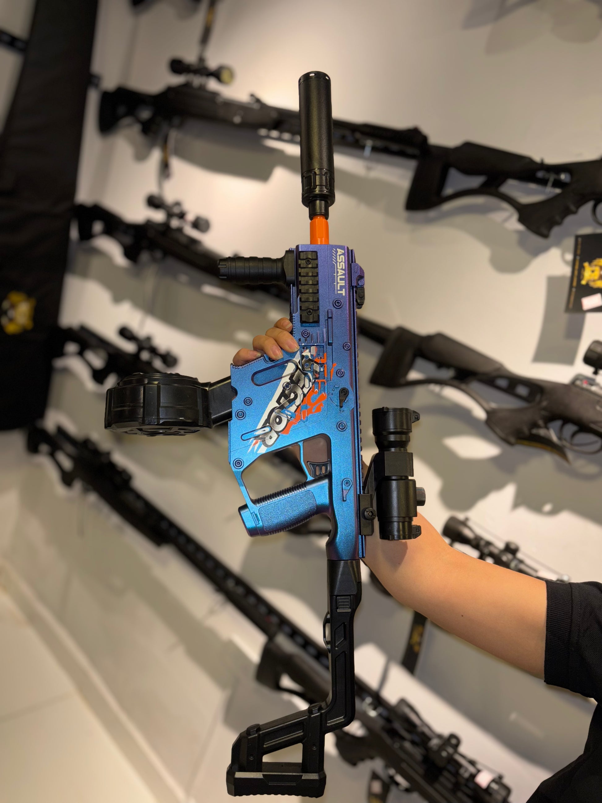 Este lanzador combina realismo en el diseño con seguridad en su funcionamiento, ofreciendo ráfagas suaves, sin dolor y 100% biodegradables. El sistema eléctrico garantiza un disparo fluido y constante, con cargador de alta capacidad y accesorios tácticos incluidos (según modelo).